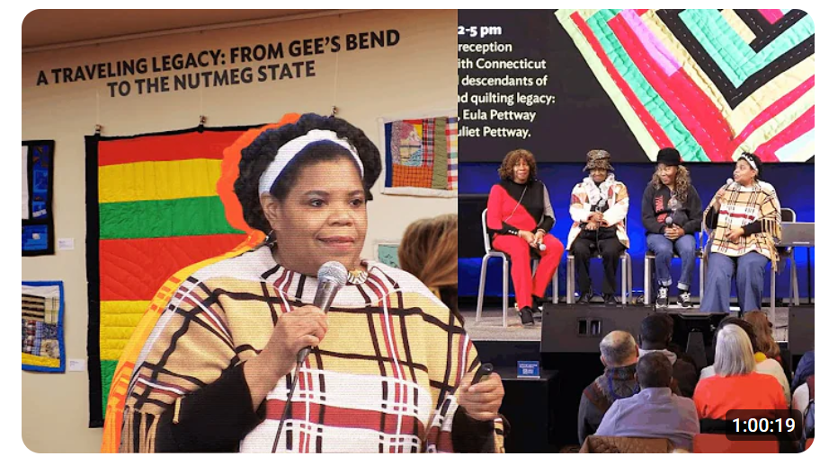 This artist talk featured Tangular Irby, an expert on the Gee's Bend Quilters, and community members sharing their histories of migration, civil rights struggles, and the significance of quilting in their narratives, including issues of appropriation.
